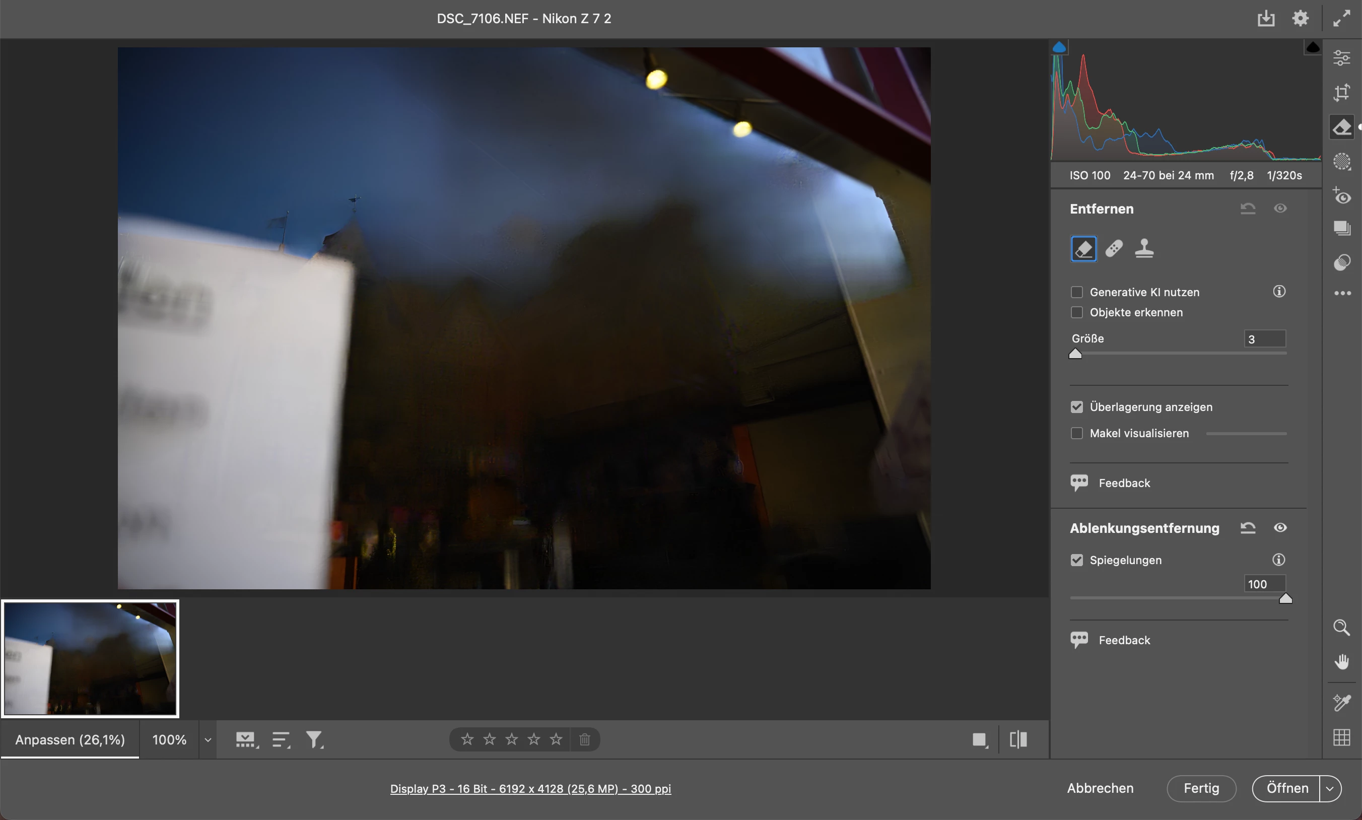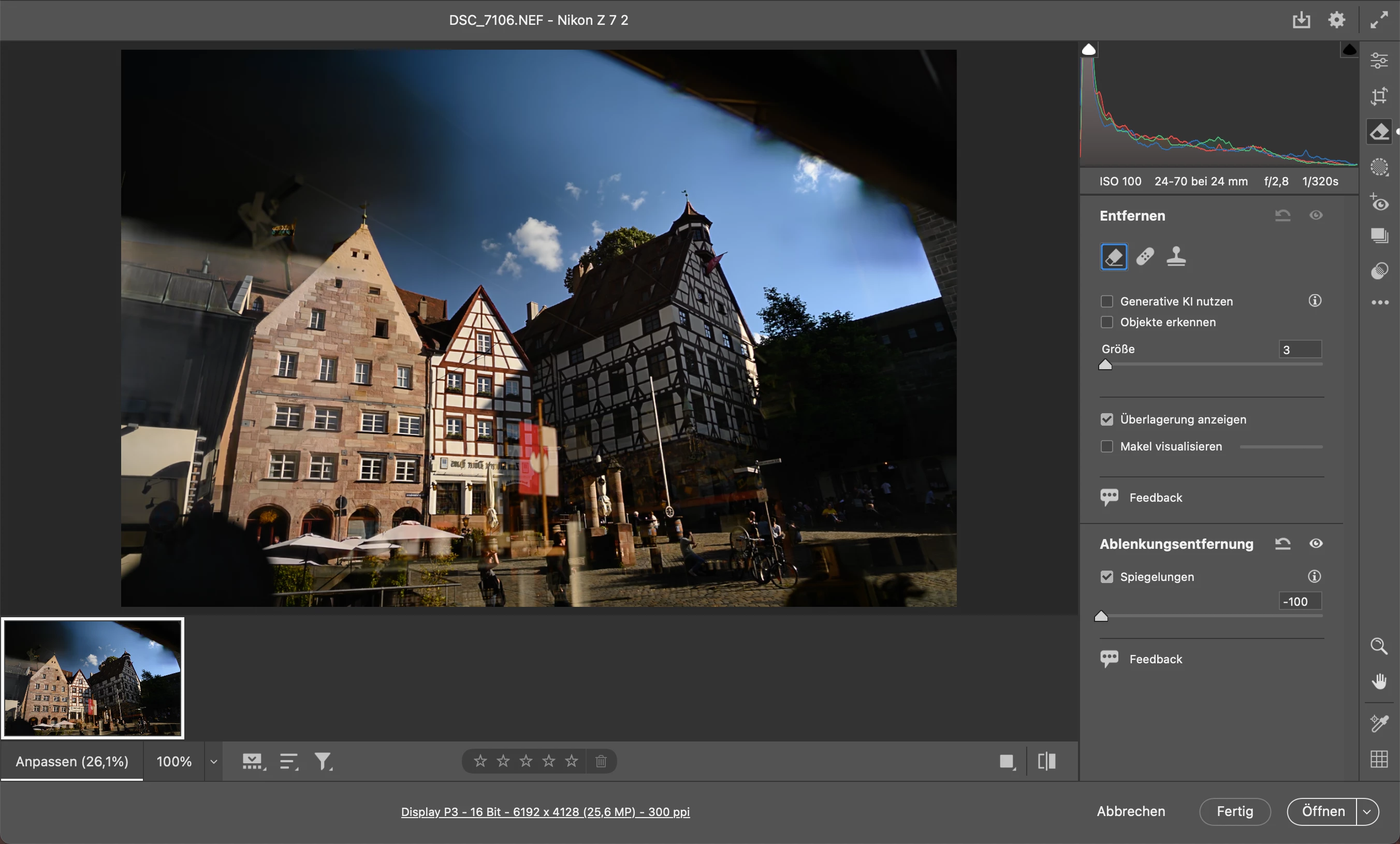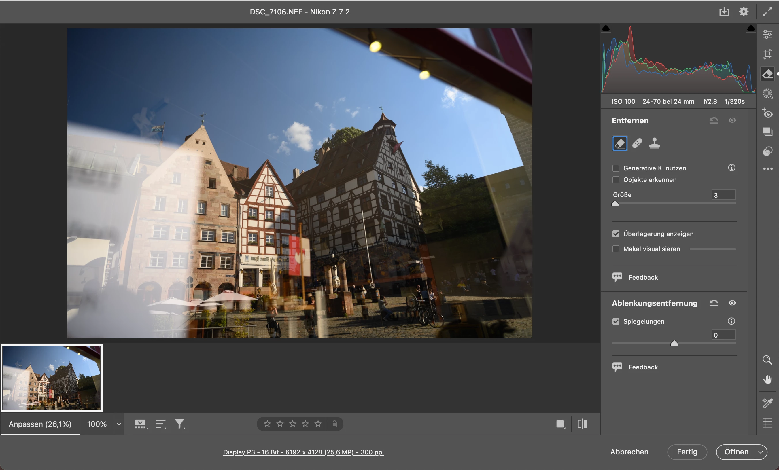I hope that you'll make the feature work on Nikon camera raw files, i.e., those with file extension nef. That will save a lot of time for me because now I have to take that nef file, convert it into a dng file, and then go to remove reflections.