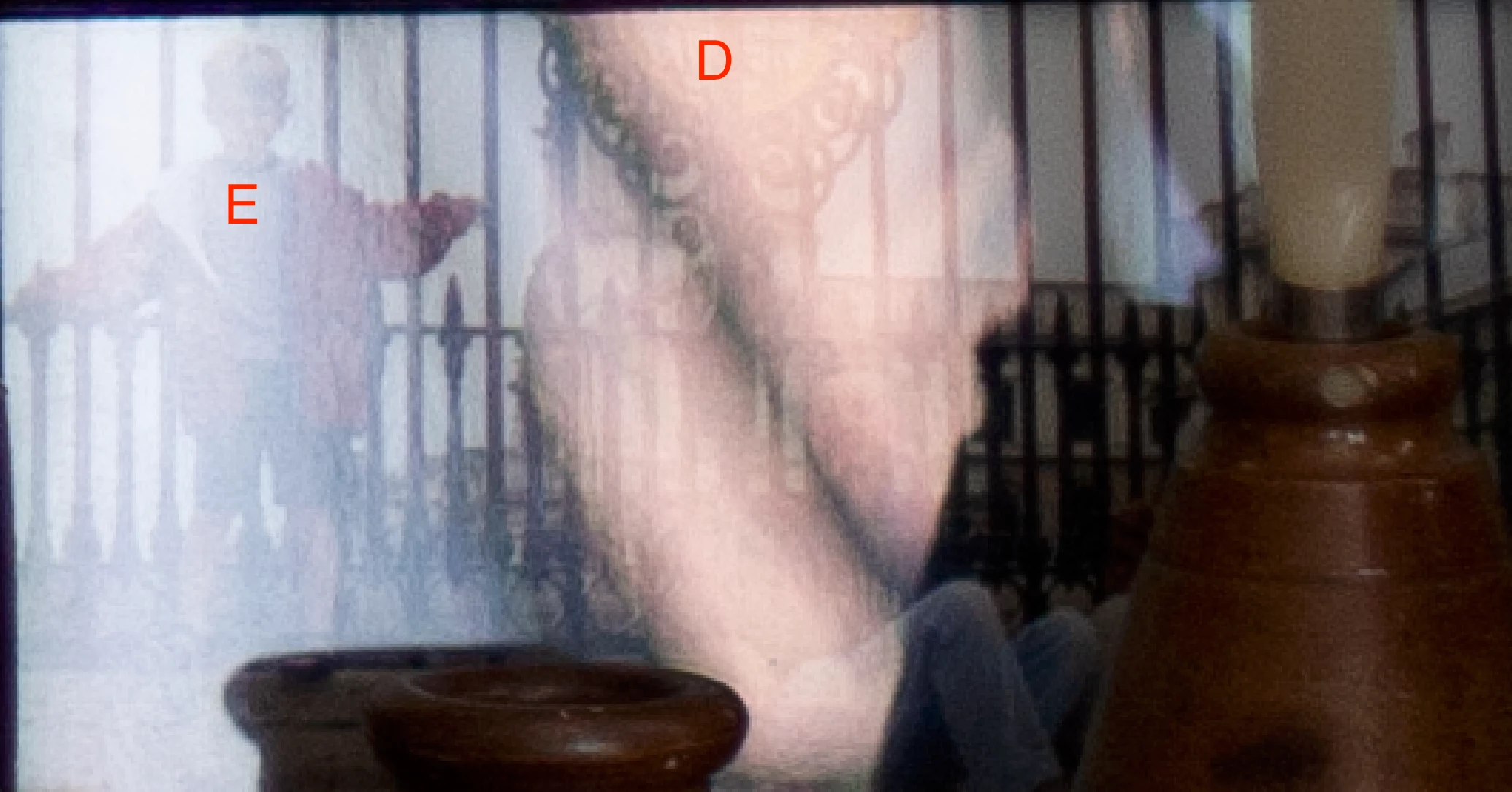 Fail: Tool unable to detect standing and seated figures and railing underlying reflections that include what appears to be someone's feet (See (C) on screen shot. I think it's actually sofa cusions). It is admittedly difficult, but so were the thigs it did well at. I thought this might be overcome by duplicating file, cropping to reveal only that part of the image, re-setting > re-doing Distraction Removal and blending layers in PS, but no dice; the Reflection Removal result was identical to that of the whole image.  (D and E). The result is a very bright reflection at the bottom which is out of keeping with the rest of the image (3). (It was made less noticeable via Masking, but is nevertheless hard to un-see!).