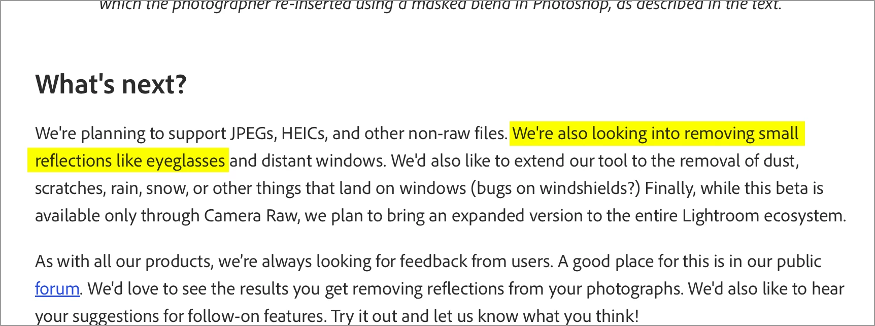 https://community.adobe.com/t5/camera-raw-discussions/p-reflection-removal-feedback-cr-amp-lrclassic/m-p/15405349#M28971