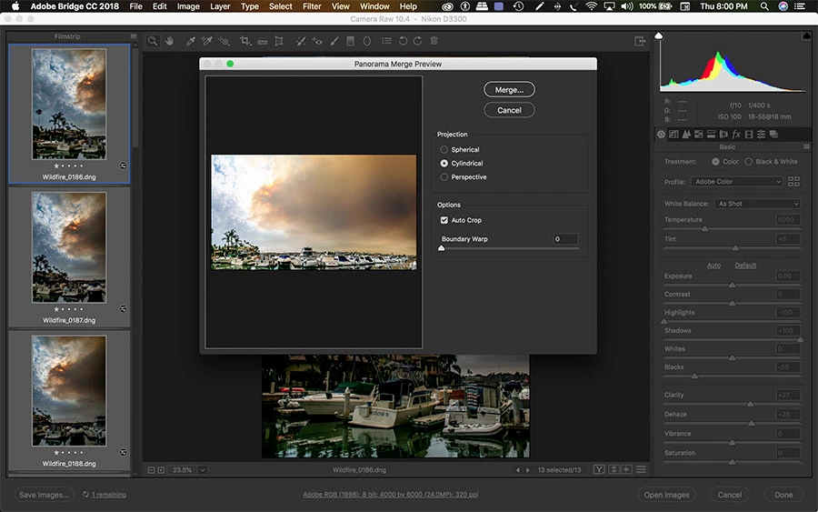 Encountered this problem when I rendered panorama in Camera RAW. Same issue in LR. Made edits to several photos. When I created panorama, the edits disappeared. Worse, I apparently lost the RAW tonal range, because I was not able to duplicate edits in the individual pictures with a global edit in the pano. This is a new problem. Didn't seem to experience it previously. Only solution was to open files in PS, then merge the corrected files into a panorama after saving as psd files. See attachment.