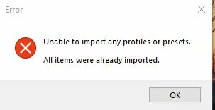 They are all *xmp files, but when I try to import them