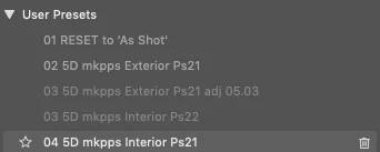 I list mine as 00, 01, 02 etc to keep them in a sort order, this has never caused a problem in the past but now some are named 03 when its actually04, I put Ps21 at the end to show thay are used with Photoshop version and it comes in as Ps22. Clicking the waste bin symbol to the side of the preset actually deletes them from the folder, it never used to do that and caused a scary moment when I hadn't backed up my latest set. Anyone else having similar issues and tips to make sense of this. Something very simple now seems extremely complicated.