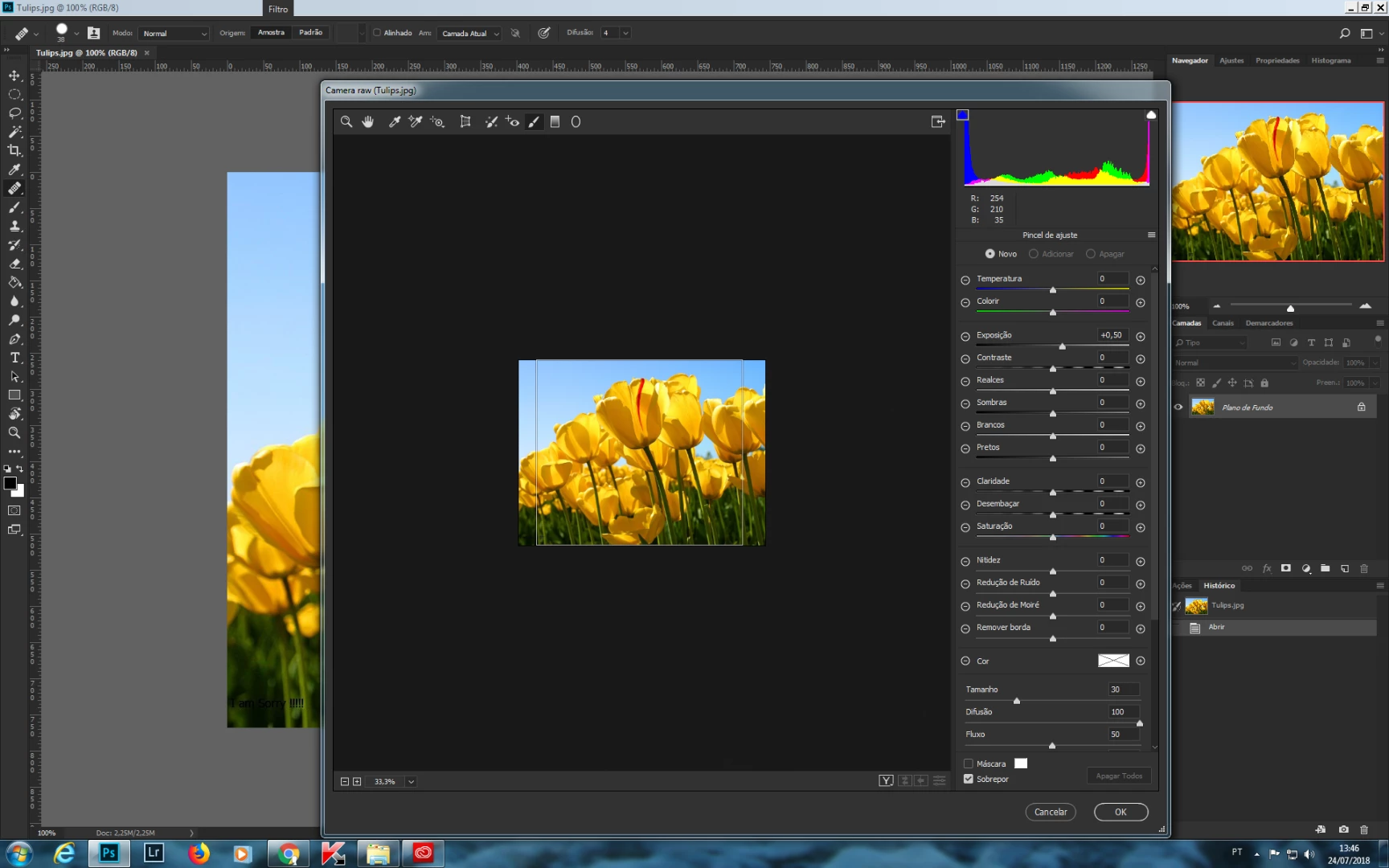 Qualquer ferramenta selecionada no câmera raw, funciona como uma espécia de zoom, e não cumpre sua real função. Não consigo usar o pincel de ajuste, pois sempre aparece a mão dando zoom na imagem: