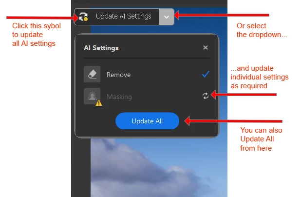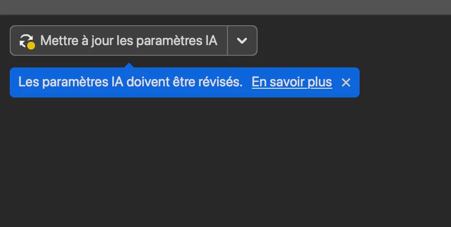 Problème dans Camera Raw 17 : Mettre à jours les paramètres IA