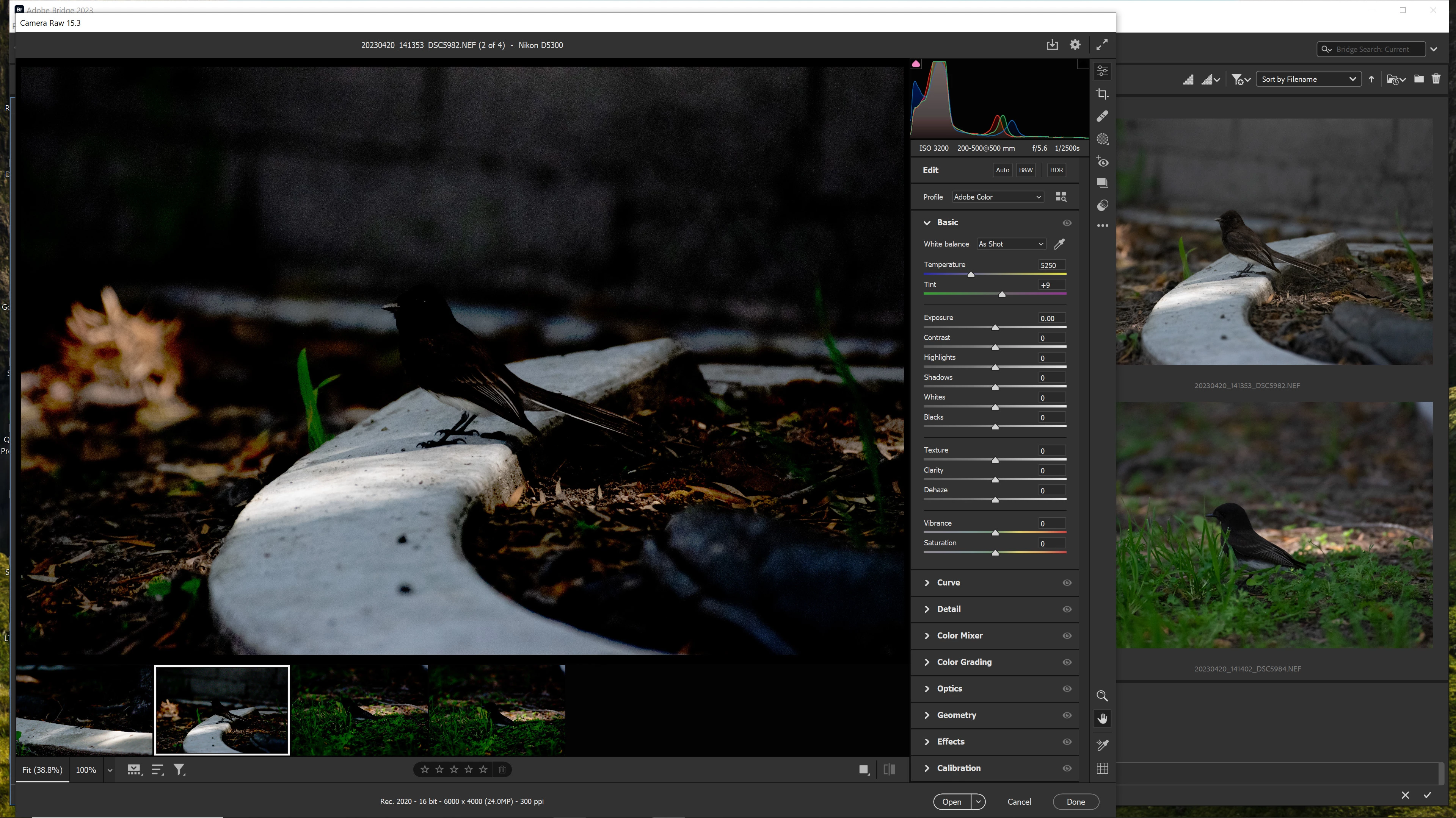Hi, thumbnails in ACR 15.3 appear normal, but when opened in ACR 15.3 they look over contrasted and over saturated. When you open the file with zero adjustments in Photoshop, they revert back to the same image as the thumbnail in ACR 15.3.