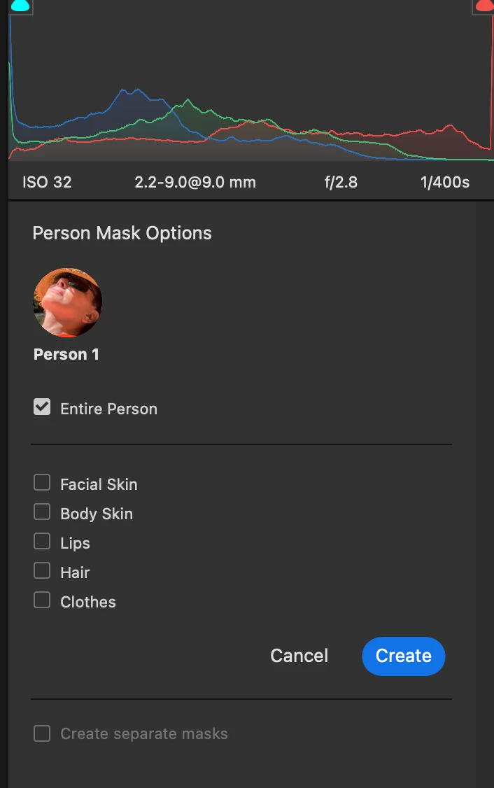 Shortcut to check all boxes in Person Mask Options?