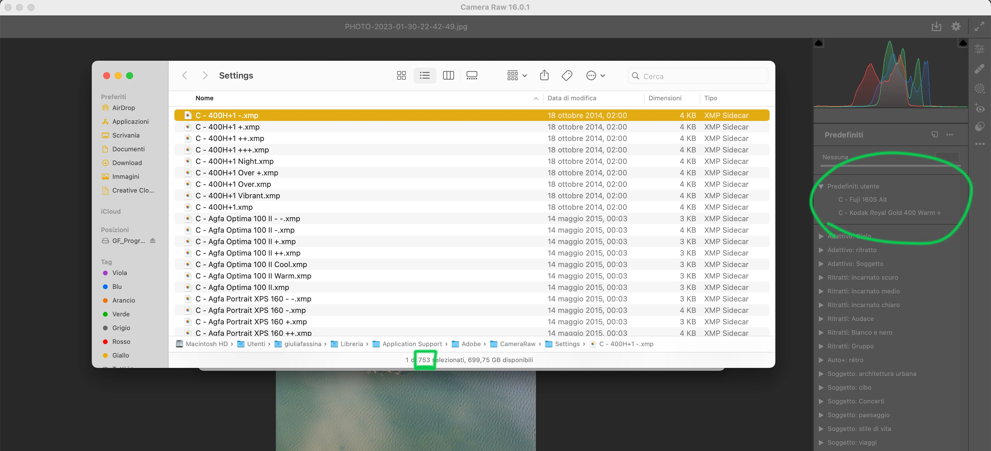 GgiuliafaxxiParticipantForum|Forum|2 years agoNovember 29, 2023QuestionUser Presets don't show up in Camera RawForum|Forum|2 years agoNovember 29, 20230 replies140 viewsHi! I have some issue with xmp presets in Camera Raw.They are in the correct "Settings" folder, but they don't show up in Camera Raw.There should be 753 but only 2 appear (photo attached). Never happened before! Please someone help me!Thank you macOS