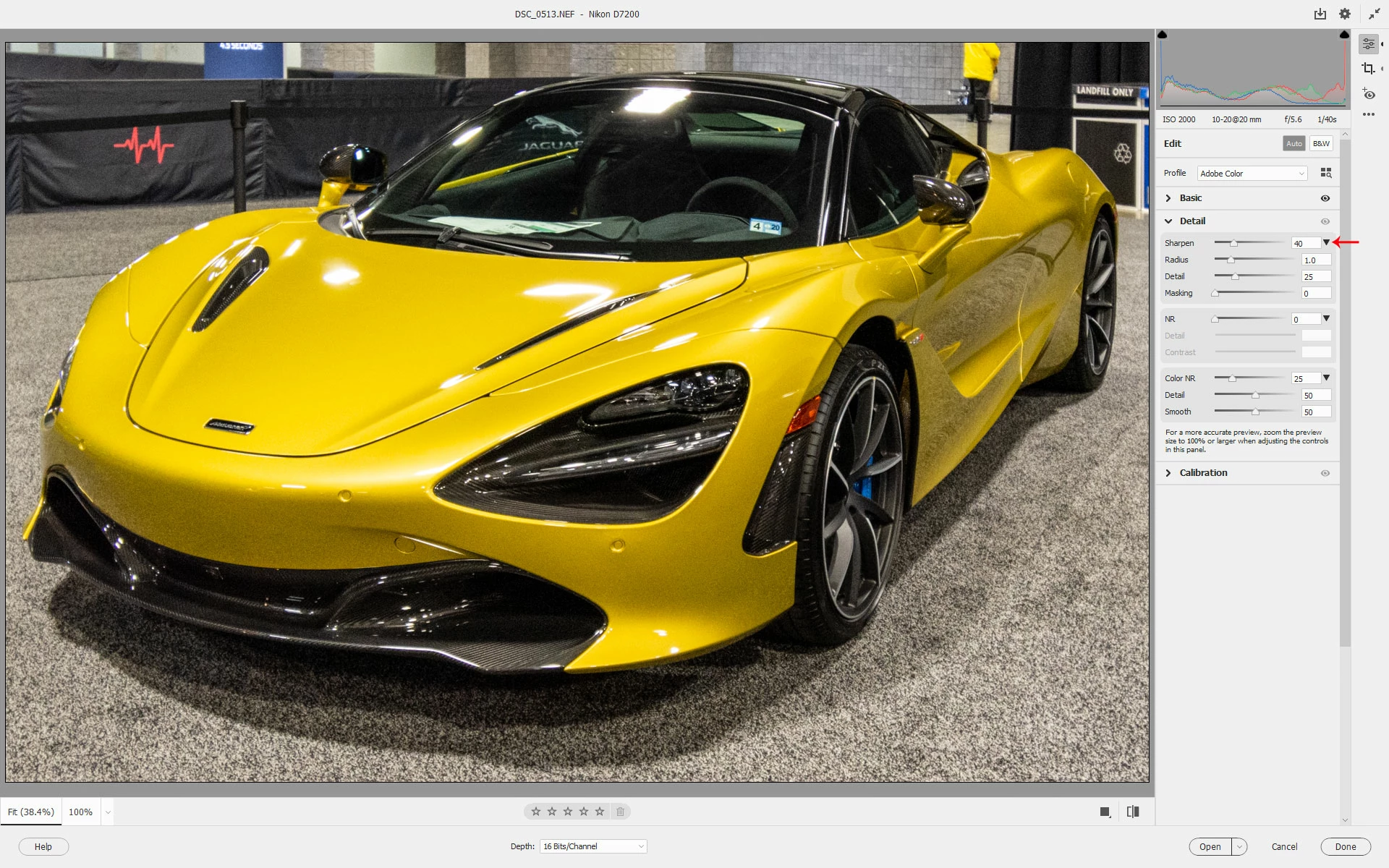 Sous Camera Raw, lorsque j'ouvre le volet Détail, n'apparait pour la gestion de la Netteté que le curseur 'Netteté'