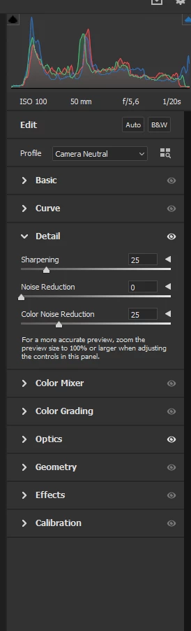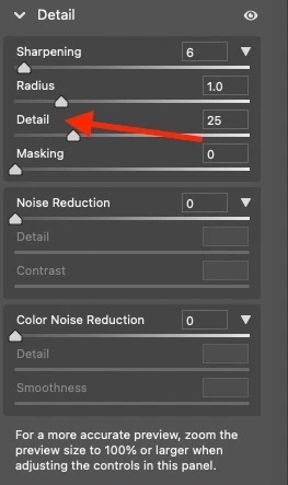 where is the detail slider in the lastest camera raw 13x ?