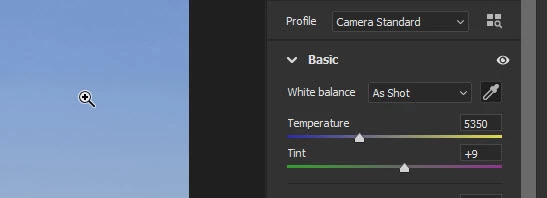 2. Select white balance tool (either by click or keyboard shortcut "I")