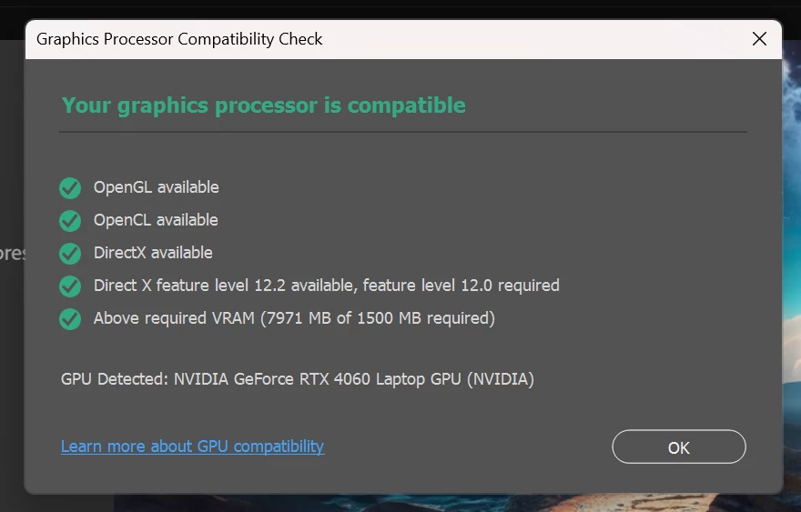 Dedicated GPU: nvidia Geforce RTX 4060 Laptop - Driver Version 31.0.15.3640