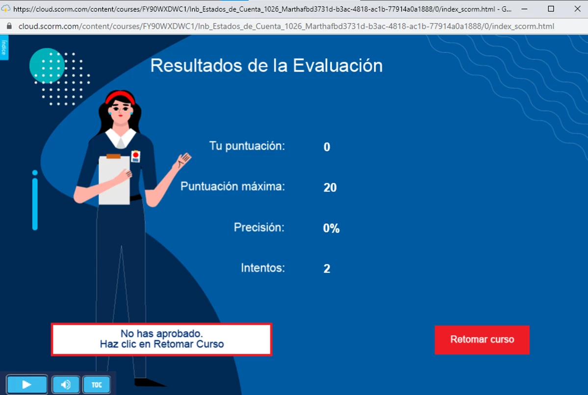 The problem is that when testing in ScormCloud, in a second and subsequent attempts, the result slide shows "zero", even when I did all the quiz correctly (it should show the score of 20 and the aprroved statrus). Any suggestion?