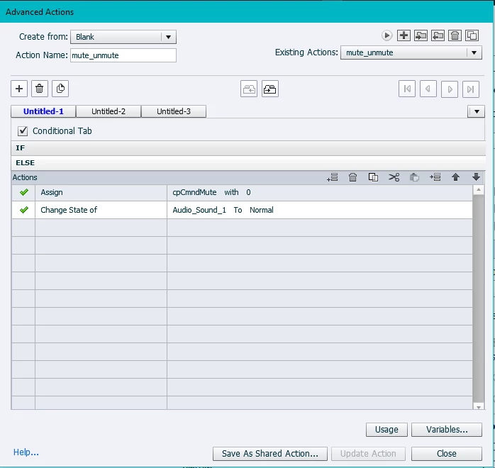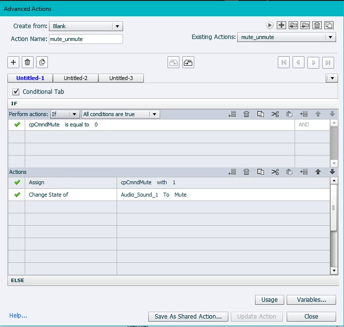 Hey Everyone! I'm new to Captivate but not new, if that makes sense. So I've been scratching my head on something that I've been trying to figure out for days now. I'm building a curriculum for a client and I created a custom mute/unmute button to be used on slide videos. I have multiple slide videos that play one after another and I THOUGHT that when I created my custom mute/unmute button and created a variable for mute and assigned it, put 0 and 1 or true and false in their respective places in the AA and all that jazz, that once the mute button was clicked and is "on", it did not matter when the slide video with audio ended and the next one started, it would still stay muted.