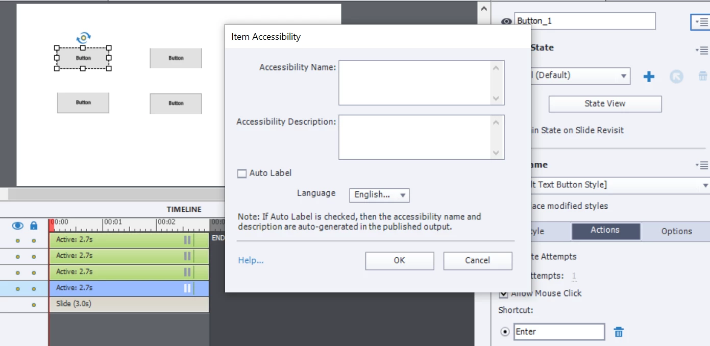 2) When I preview the output locally in Captivate, object interaction is not behaving correctly as per the script added after applying the accessibility to object wise.