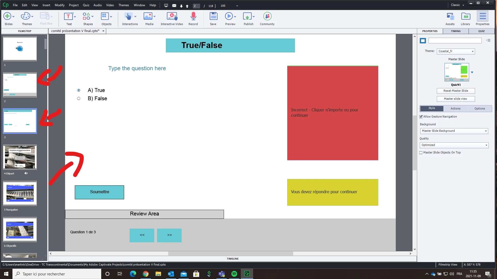 If I try and add a matching question slide and another question slide, it doesn't crash, but I cant view the matching question slide. If you look at the picture joined with this post, I have the Matching question slide selected on the left side of the screen, but I still have the True False question slide on the right side of the screen and it never changes. (I sometimes have a similar problem with result slides in other projects)