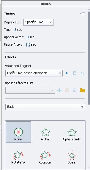 I cannot figure out how to have it appear when the slide starts or why there is a 1.5 second delay in showing it. Shouldn't it be visible during the "active" portion on the timeline?