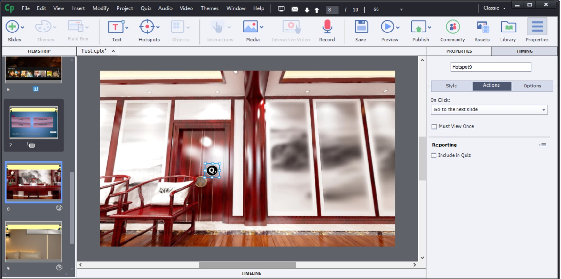 I'm trying to add quiz to the virtual reality course but in action its only showing "Include in Quiz" on Action Tabs.