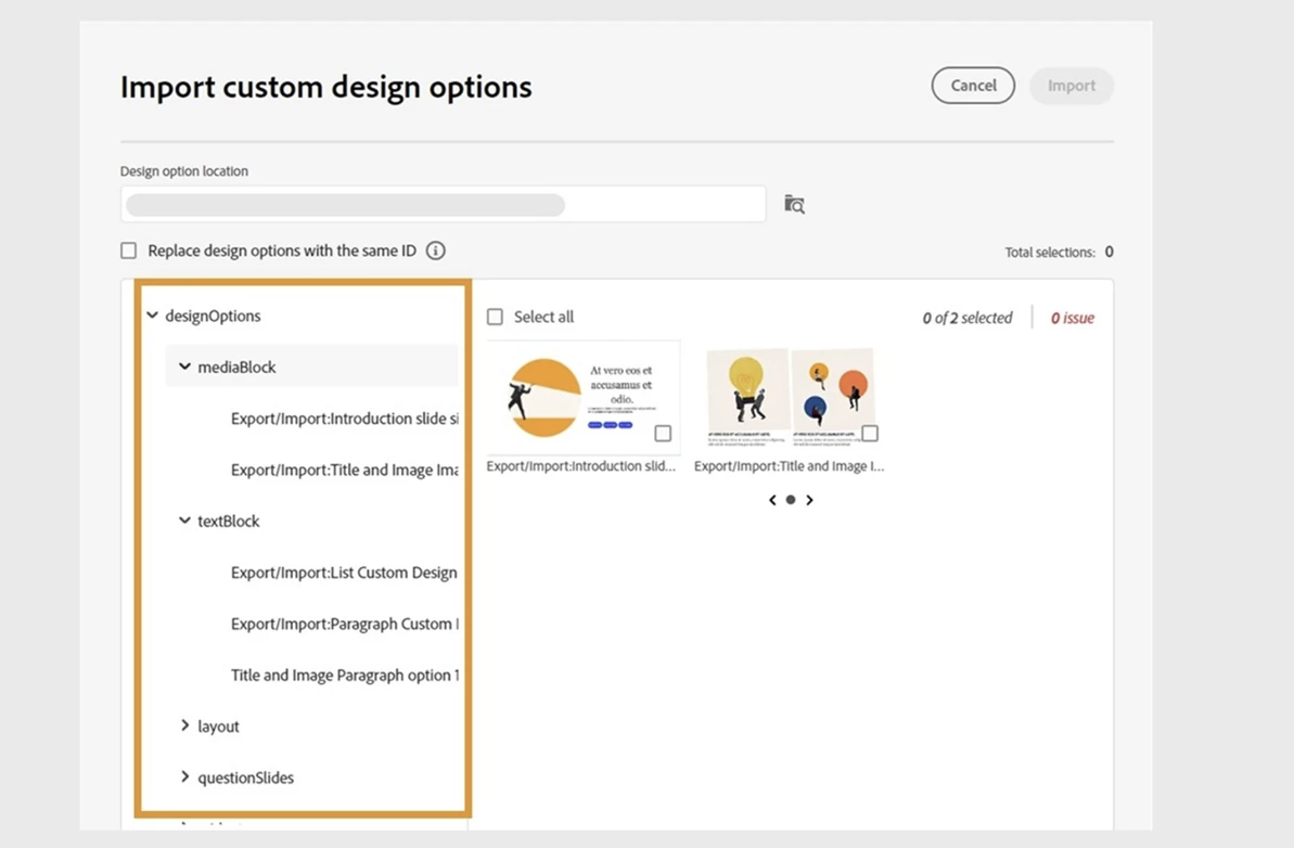 Creating eLearning content that stands out often requires customization, from personalized color schemes to unique layouts and branded themes. The Import/export Custom Design Options feature allows you to export your custom design options from one Captivate project and import them into another. Whether you’re working on multiple projects within the same organization or collaborating with other designers, this functionality enables seamless sharing and reuse of design options, eliminating the need to recreate them from scratch.