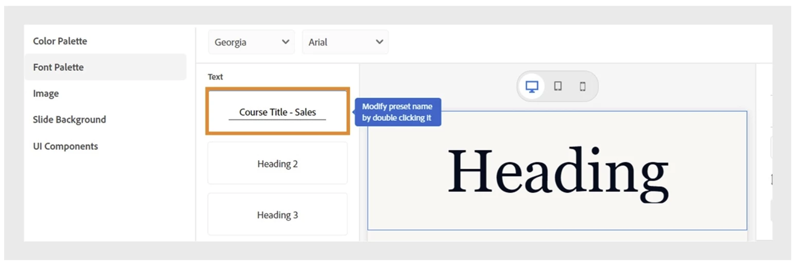 Text presets are time-saving templates for text formatting that can be reused throughout your course.  And we’ve made text presets more flexible. You can rename them to match your workflow, keeping things organized and stress-free. Consistent naming conventions make it easier for collaborators to understand and use text presets throughout the project.