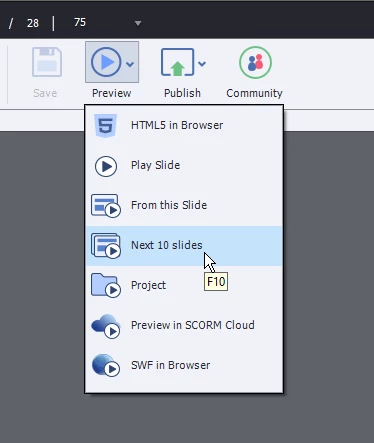 Adobe Captivate 2019 unable to preview project using "Preview next X slides"
