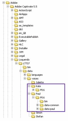 A Kate and Paul directories have been install under Adobe Captivate 5.5 but I don't know why these voices seems to be not installed.