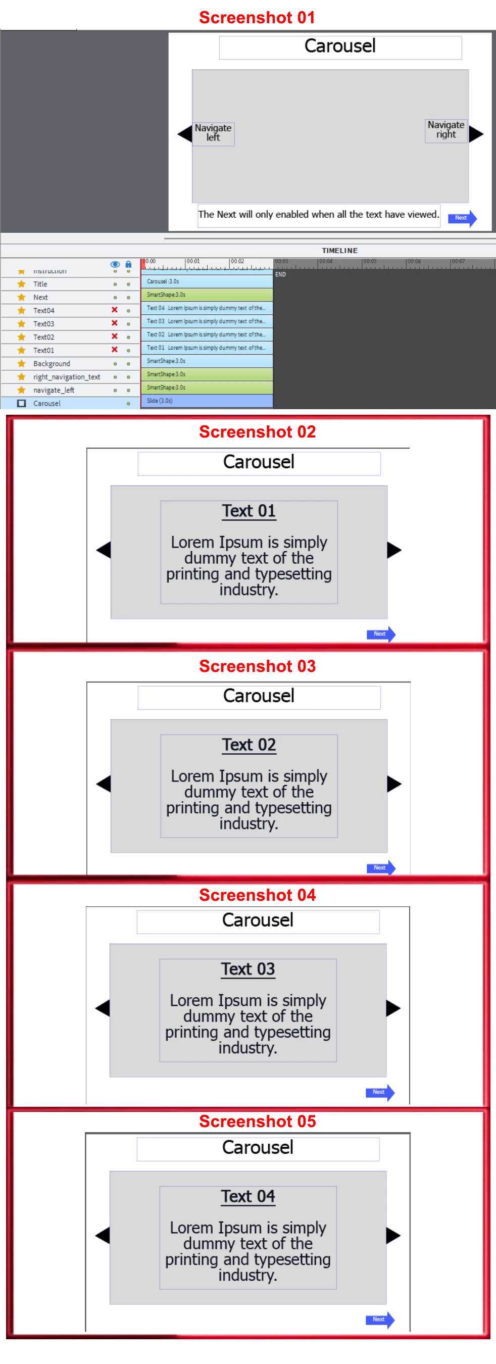 Adobe Captivate Classic - How to create a carousel with a next button??