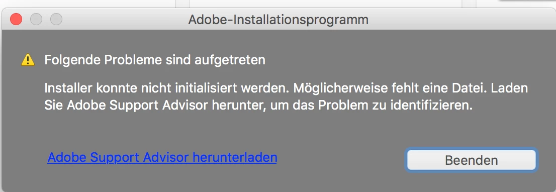 When I start the installer of Captivate 9 for Mac, it says that a file is missing.