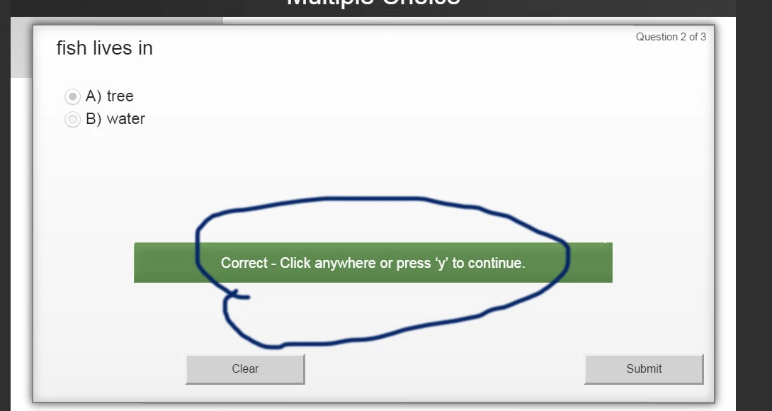adobe captivate quiz : click anywhere or press 'y' to continue