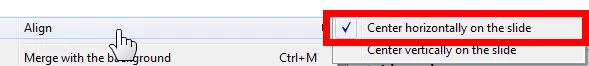I have an image on a slide and would like to turn off the "Center Horizontally on the slide" (see graphic).