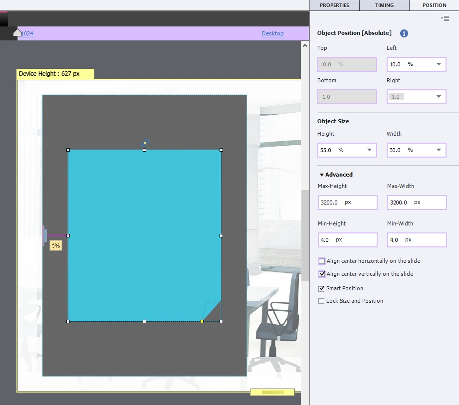 I have a responsive project and want to align objects to the middle of other objects that are located below them. I can use smart positioning to align objects from the eft or right of the object below but how to align them from the middle of the object to a border of the object below?