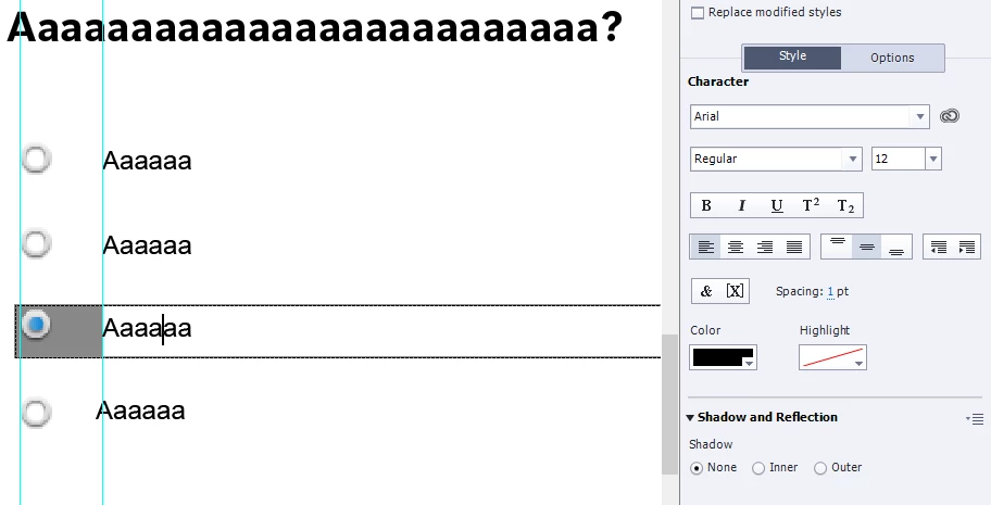 Doesn't matter if I set Single or Multiple answers to be correct, last one is not aligned as the other answers are: