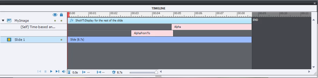 I have an image that I would like to be on the screen initially for about five seconds, then use alpha from and to effect to gradually fade to about 50% over another five seconds, and then remain at about 50% for the rest of the slide, another 15 seconds. Is this possible?