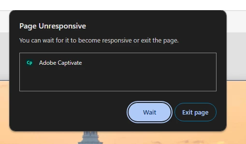 I'm also having an issue where if I scroll through the film strip and select a slide to look at, I will get a prompt that asks if I should wait for captivate or close it as it is not responding. I tell it to wait and it eventually catches up, but I feel like captivate should not be struggling this hard... IMO the course is not very complicated, though does contain software simulation slides which I've read online are especially buggy.
