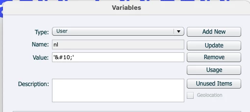 I am using Javascript for one interaction and can update the variable used by the TEB without an issue. However, I am having problems adding a new line from within Javascript. I have searched for previous discussions here and online. I have tried adding the following line in the Javascript to update the TEB variable using the escape sequence "\n" for a new line, as specified in the MDN docs: