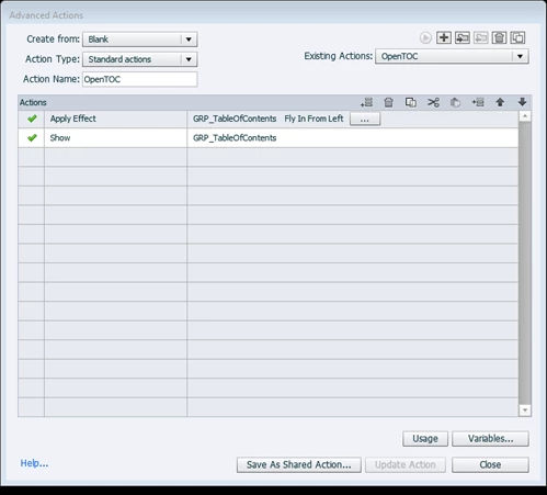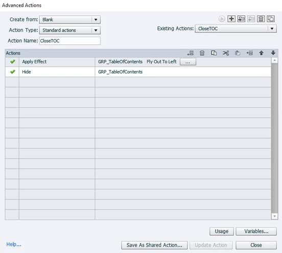 I am using a custom TOC with a button that has a show action and a different button that has a hide action. The show/hide actions work beautifully and I can toggle between them all day on the same slide as desired. However, I'd also like to add an effect. When I add an entrance effect on the show and an exit effect on the hide, it looks great; however, now I can't click the button again right away as I could when it was just show/hide.