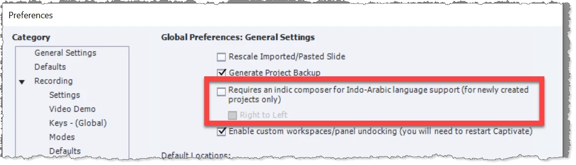 When I tried to copy paste the arabic text or import the translated word document the captivate only shows the text left to right.