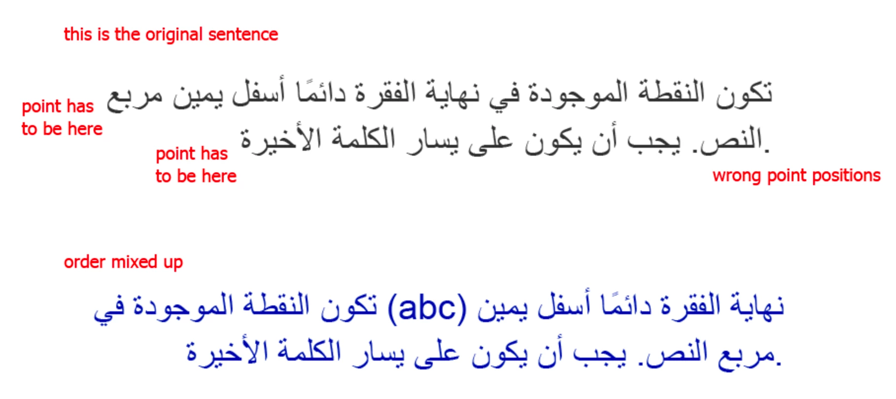 Arabic texts - left to right does not work? (mixed order and wrong point position)