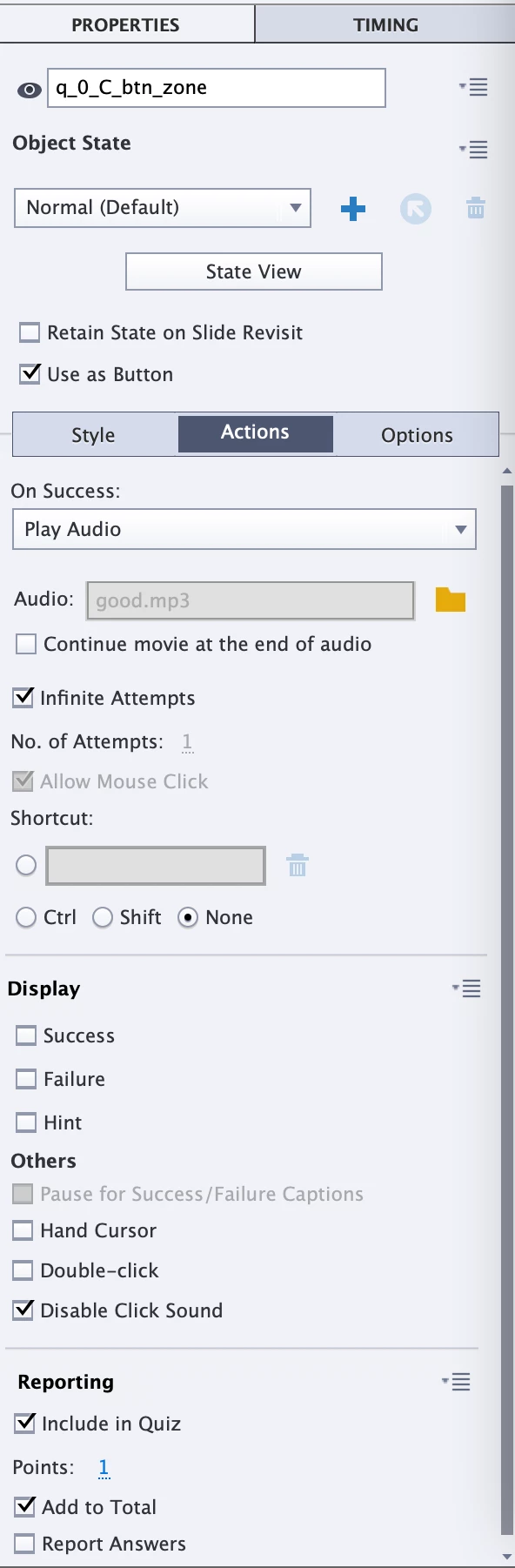 There are also sound playing on other slides on the timeline and they are all working fine, I also got videos that play fine, it's only the answer buttons that don't play the sound anymore. The buttons are working fine by themself, they show the answer then go to next slide, etc.