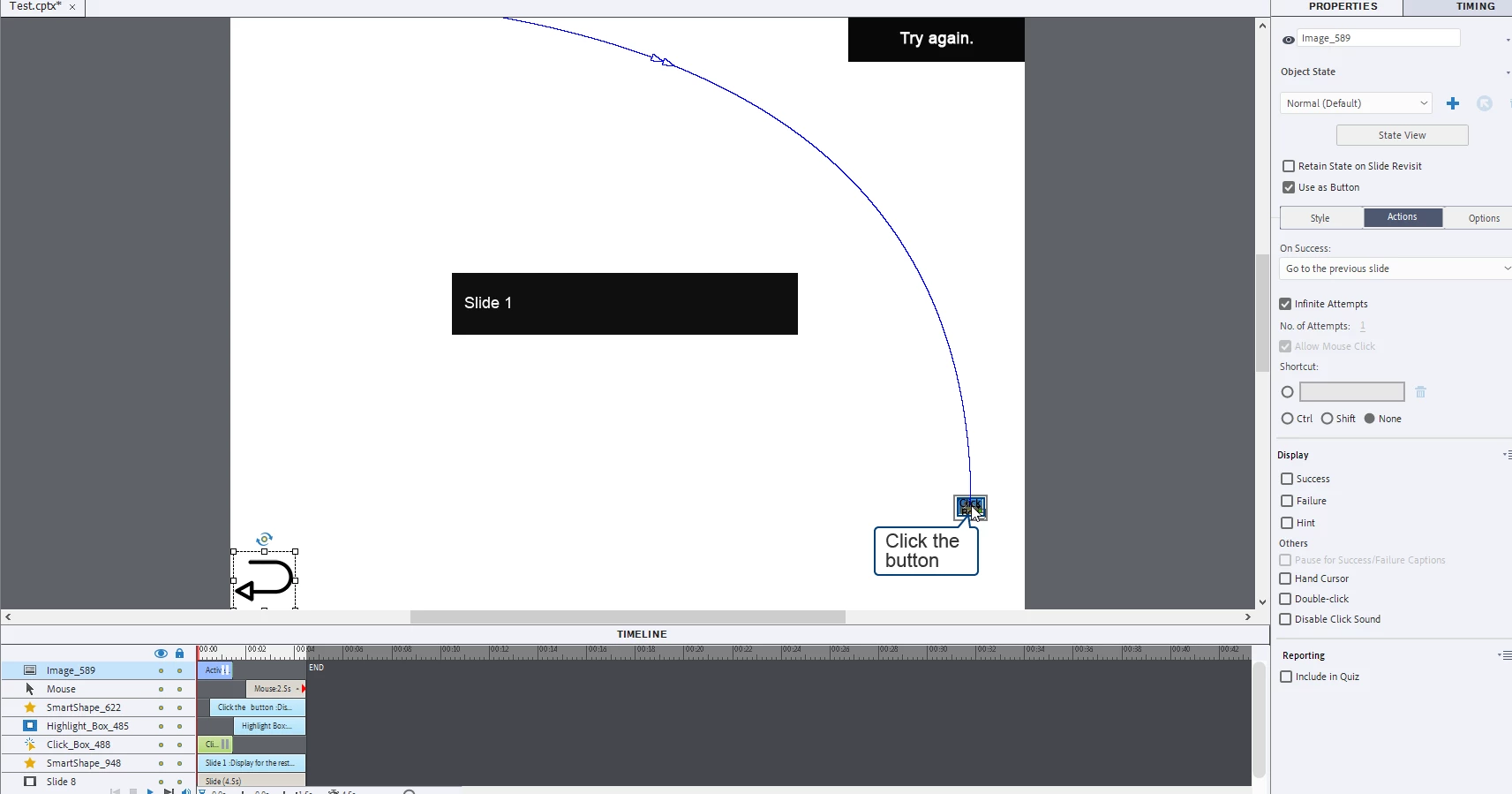 I've added an image as button and set the action to go to the last slide visited and also tried go back to the previous slide. However, it doesnt work as intended as it triggers the failure from the click box on the same slide. It works if there are no clickbox on the slide. Can someone please suggest a solution. Thank you.