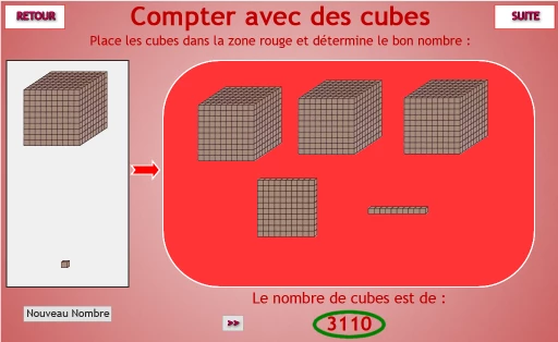 I'm starting to work with big numbers... I made a D&D slide in which I can put 1 000, 100, 10 or 1 blocks in a specific area.