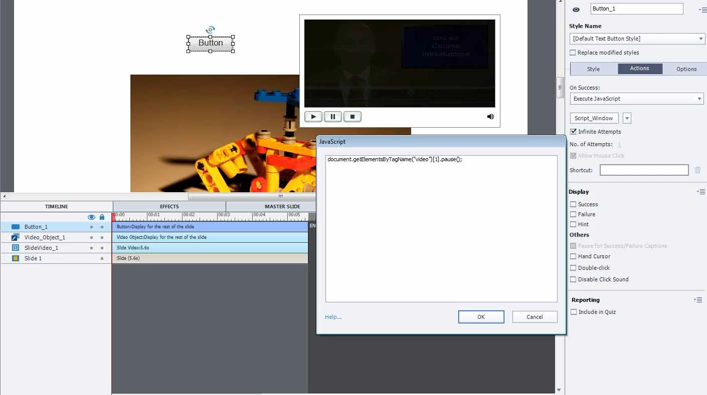 Don't understand why but when I preview next 5 slides it is working, but when I preview project it is not... I guess it has something to do with the name "video" in the script. It searches the "video" in the whole project and ends up with an issue. My project includes 6 slides and this one is in the middle. any idea please?? Thanks