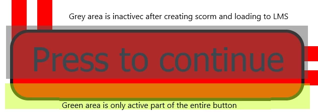 I have an issue using buttons as "Press to continue" buttons. When I preview my completed project the button works fine (Whole surface area of button works as intended), however when I convert the project to scorm and upload to my LMS (TalentLMS) the button only functions as intended on the lower 25% of the button surface. Previewing the project in the scorm cloud has the same effect on the button, this suggests that my issue is adobe captivate related.