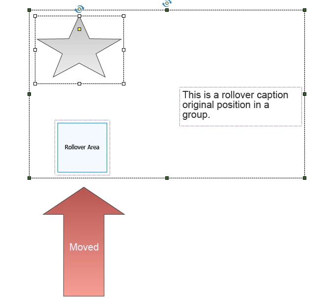 In CP8, I want to create an object - a red dot - that will be used for rollover captions throughout a project. I created a red dot, created a rollover caption, and sized the rollover hotspot to the red dot. I'd like to group the red dot and the hotspot, so I can easily duplicate the combined object. However, when I group them, the caption itself becomes part of the group. Moving the dot/hotspot combination also moves the caption, and vice versa. Is there a way I can group the shape and the rollover hotspot without including the caption in the group? I've tried, but haven't found a way to do it. Or, is there a better way to create a rollover object that can be moved independently of the rollover caption?