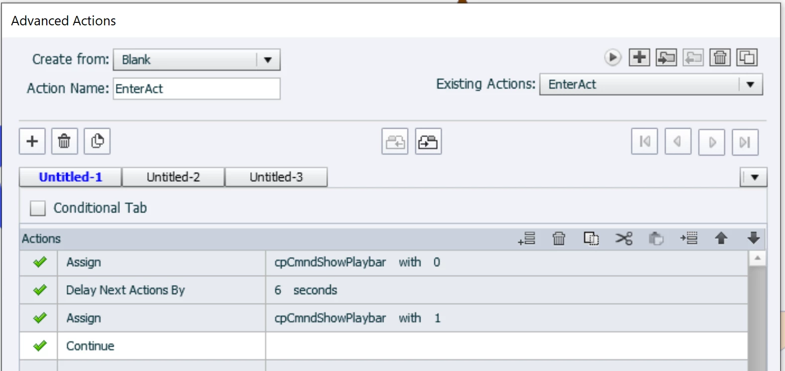 In a project I am working on, I use a Hide Playbar action when the slide is entered. After it plays to a certain point, I want to Show Playbar to reveal the Playbar.