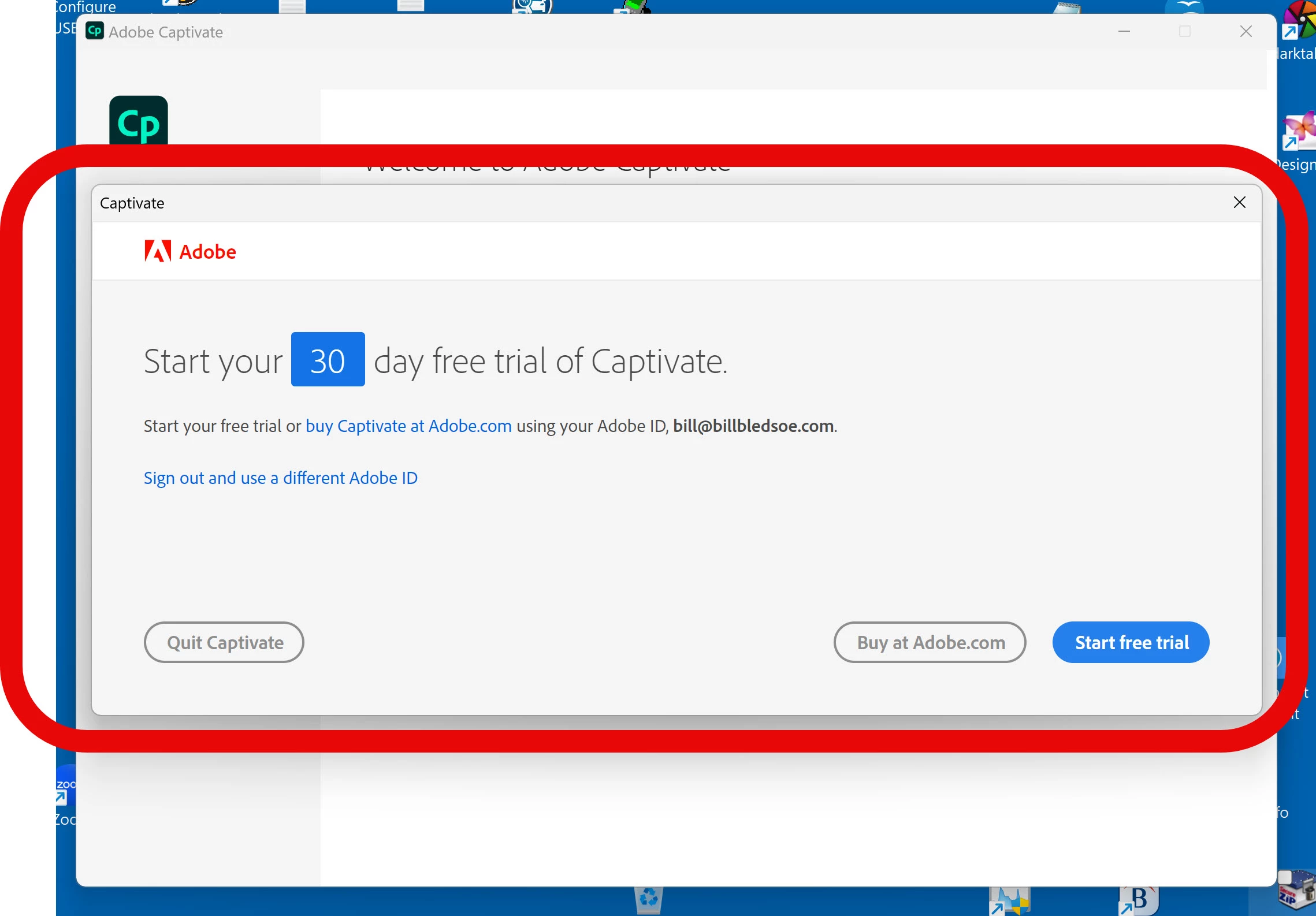 I click the start free trial button and the login auth screen disappers and you see Captivate for about 5 seconds, then the login screen appears again to login. Then start free trial. Then login screen disappears again. Then reappears 5 seconds later and want you to login. It goes in a circle.