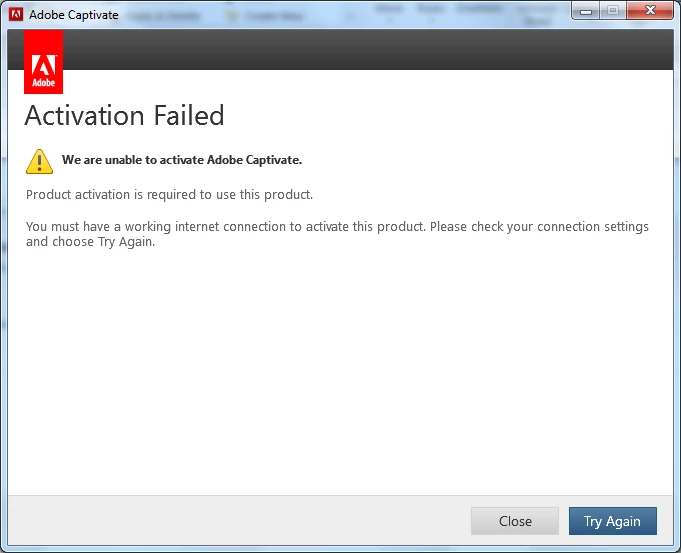 When trying to access Captivate I get the following message.