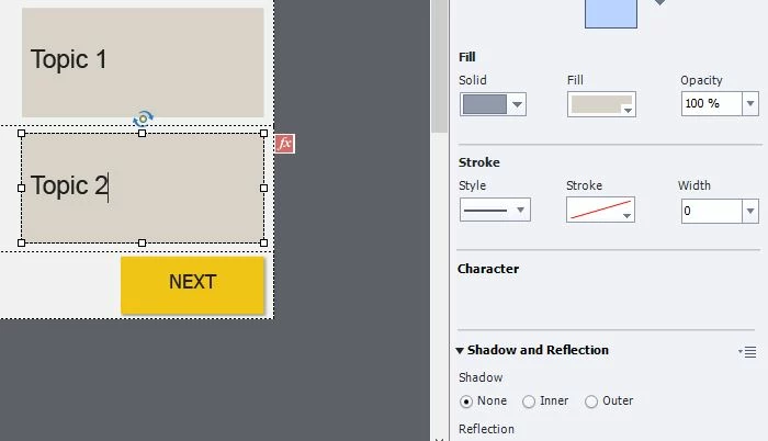 When editing text in smart shapes for fluid boxes, the Character section under the properties menu is empty and I am unable to change font size, type, and color. Previously this was not an issue and I was able to format the smart shapes. I am still able to add/delete text, but I cannot format the text anymore. This is a new bug in Captivate 2019 that I've encountered a couple times now. Usually it goes away after clicking other objects but now it's stuck like this in the responsive project.