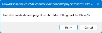 Failed to create Cache folder: Falling back to the default locationCaptivate Cache