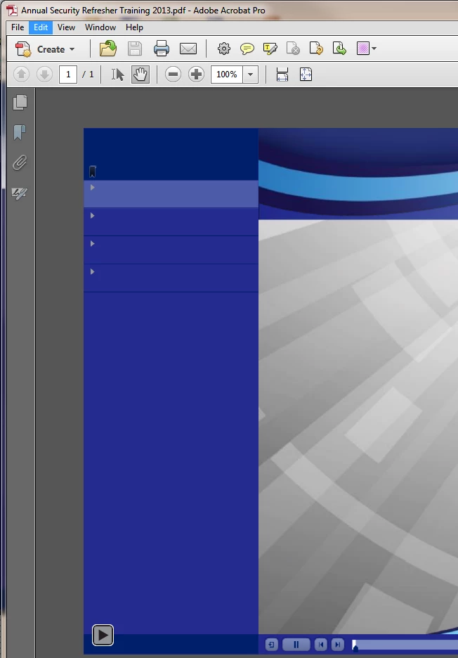Now however since this morning I have not been able to open a single pdf out put from captivate even the ones that previously worked for me. In some its just a blank white window and other its shows a poster created from the main page but none of the TOC entries are filled in and when clicked to active it jumps right too the blank screen.