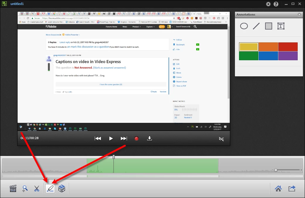 Captions on video in Video Express